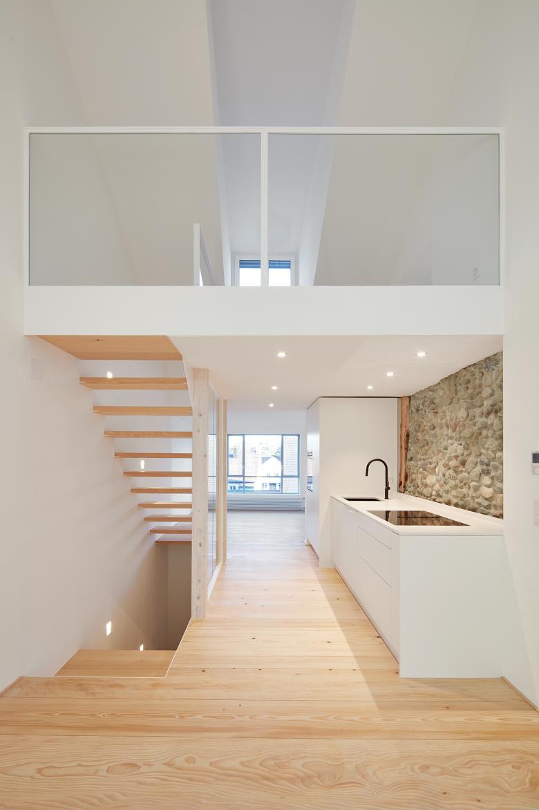 Ein schmales Wohnhaus in der Altstadt erfäht einen Innensanierung. Die innere Organisation wird neu gestaltet.