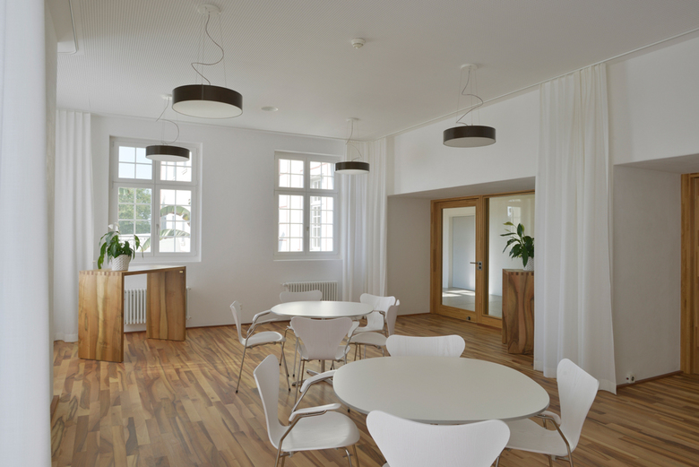 Die technischen und betrieblichen Ansprüche eines modernen Heimbetriebs waren zu verbinden mit den bauhistorischen Zielsetzungen in einem Barockgebäude von nationaler Bedeutung. Für die Bewohner versuchten wir in Gestaltung, Materialwahl und Ausstattung eine frische und freundliche, Atmosphäre zu schaffen.