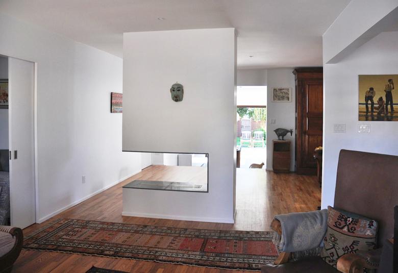 Addressing their wishes, APT used specific design interventions to alleviate congested spaces throughout the house. We opened the ground-level floor by removing rooms that had been constructed at the center of the floor plate. A sequence of living rooms was designed to open completely to the garden and allow natural light and natural ventilation to flow through. New bedrooms, bathrooms, and a free-flowing kitchen were also added, and the front yard was planted with native vegetation that screened the street.