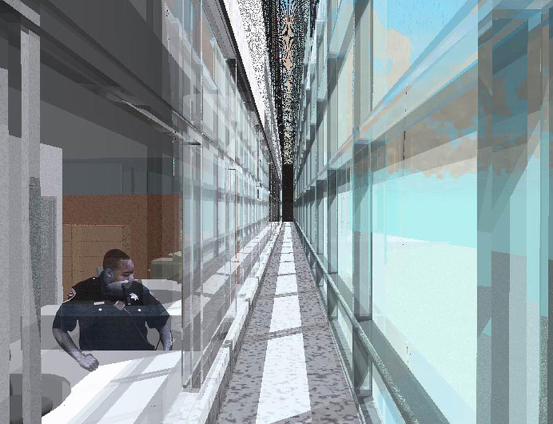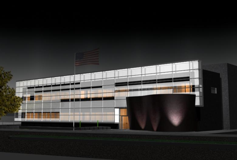 The physical siting of the building informed the firm’s decision to maintain a simple, rectilinear concept related to the urbanism of the street. The building is organized with two visually shifting volumes. A free form inserted in the front office volume serves as the muster room and is available for public use.