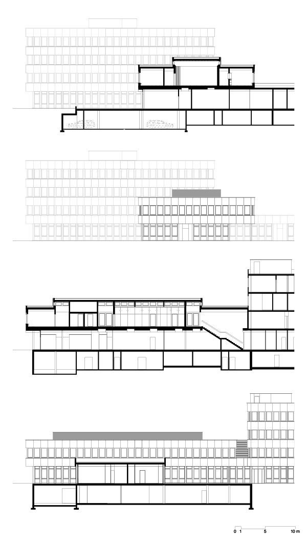Das Polizeigebäude Foribach ist einer der wenigen typischen Vertreter der 70er Jahre-Architektur im Kanton Obwalden. Die Aufstockung orientiert sich am Bestand und fügt sich nahezu nahtlos in den ausgewogenen Gesamtkomplex ein.