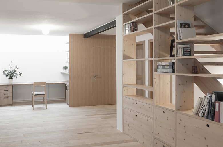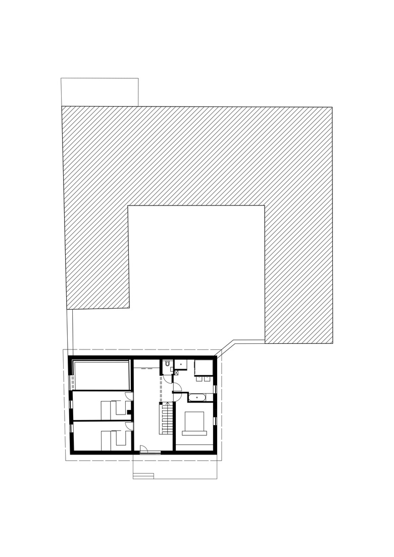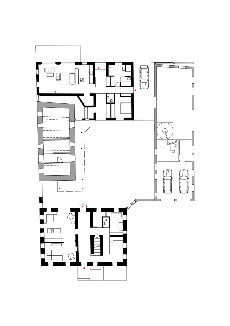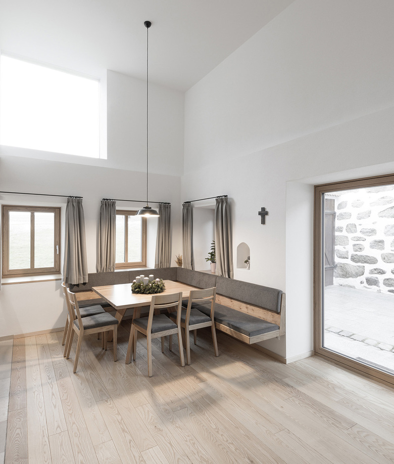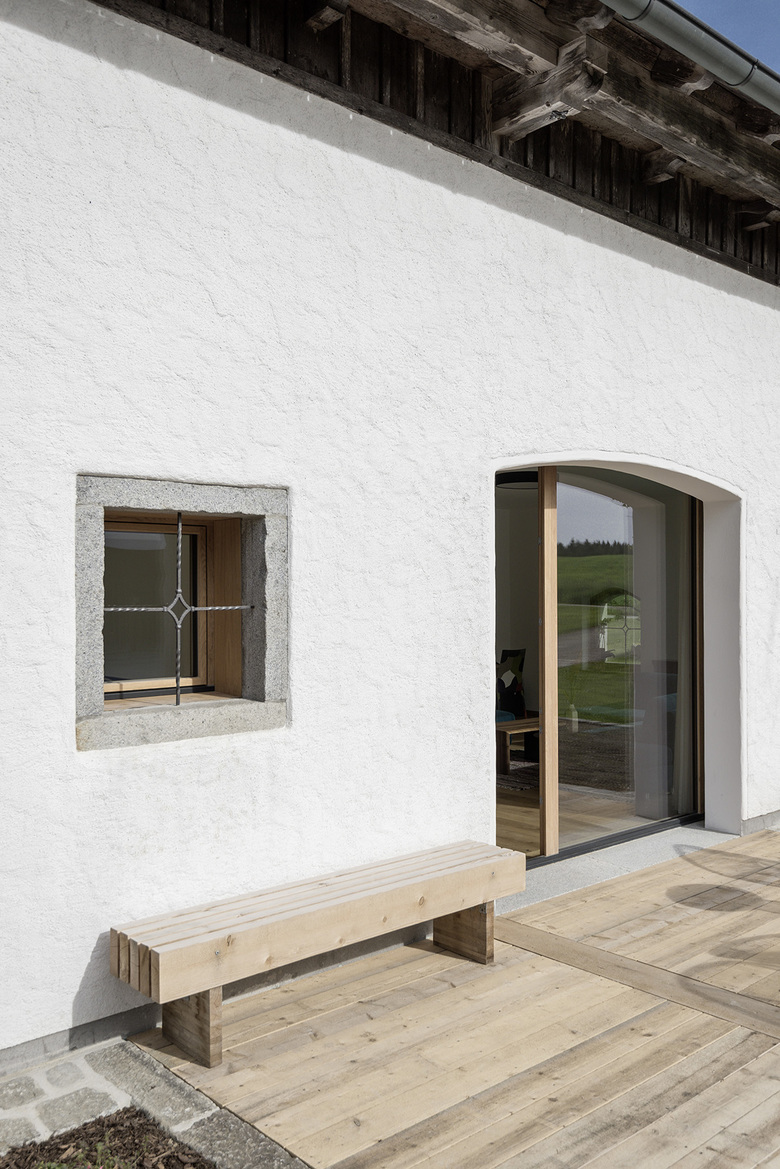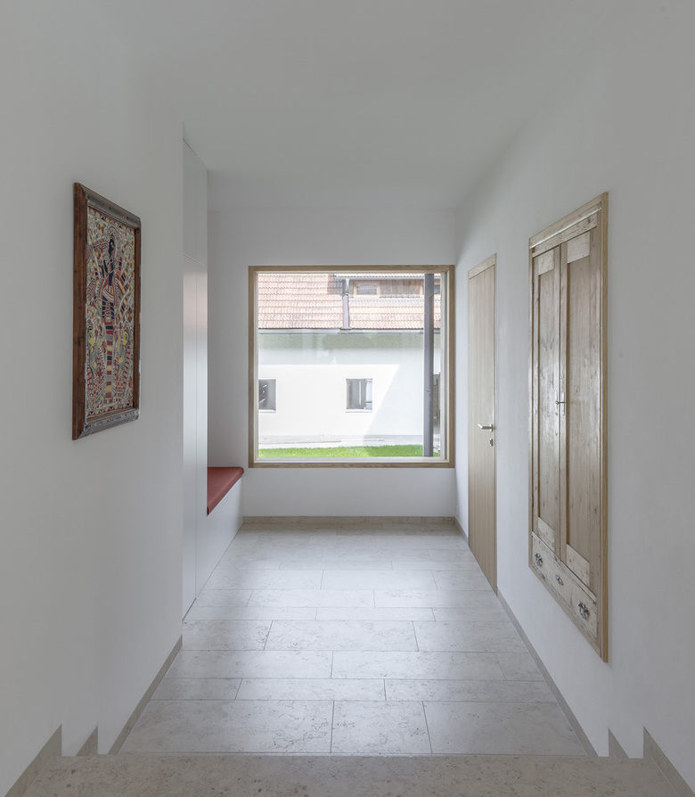 Das Ergebnis ist modellhaft. Anstatt die alte Substanz brach liegen zu lassen und gleichzeitig unwiederbringliche, wertvolle Agrarfläche zu versiegeln wird der vorhandene Raum neu gedacht. Im renovierten Hausstock leben nun die Jungen. Im ehemaligen Stadl und der Garage die Alten. Der Stall wird zur neuen Garage mit Werkstatt und Hackgutheizung. Der einstige Heizungsraum zur Fitness-Sauna. Nettes Detail am Rande: Die Baustelle war von Außen kaum wahrnehmbar. Für die Nachbarn war plötzlich ein Wohnzimmer in der Garage.
