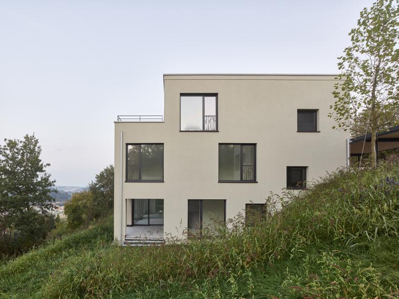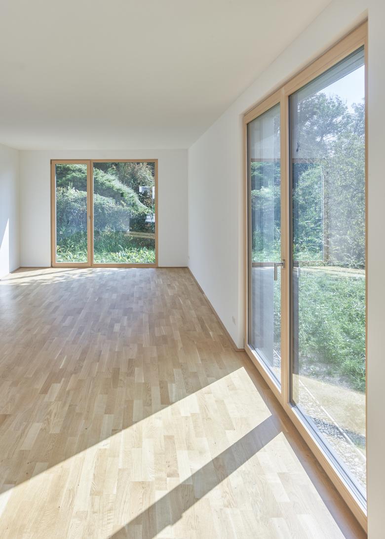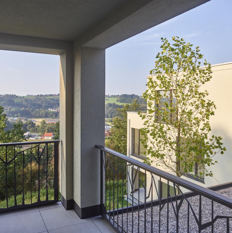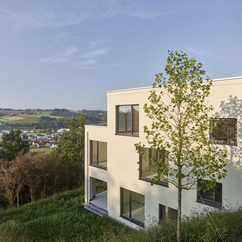 Hoch über dem Trattnachtal sind zwei ländliche Villen mit jeweils drei Wohnungen entstanden. Die zwei Häuser sind horizontal und vertikal zueinander versetzt in den Südhang eingebettet.
