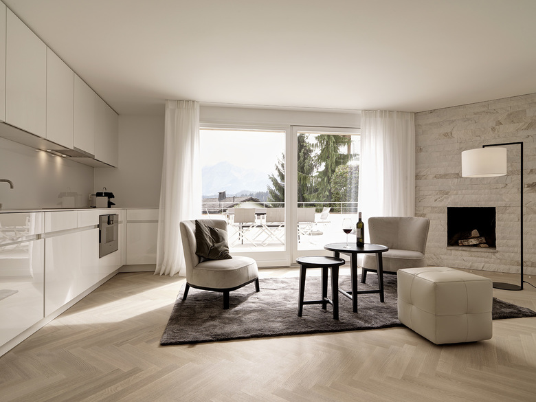 Im Jahr 2014 wurde die zweite Etage des Mehrfamilienhauses s’il Crest komplett neu konzipiert. Die Ansprüche der Familie und deren erwachsenen Kinder nach einem gediegenen, privaten Bereich, wollten wir gerecht werden. Auf der Wohnetage entstanden so eine 41/2 Zimmer und eine 21/2 Zimmer Wohnung. Die beiden bestehenden Studios im Stile eines Hotelzimmers wurden für Freunde ebenfalls saniert.