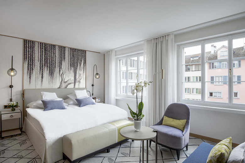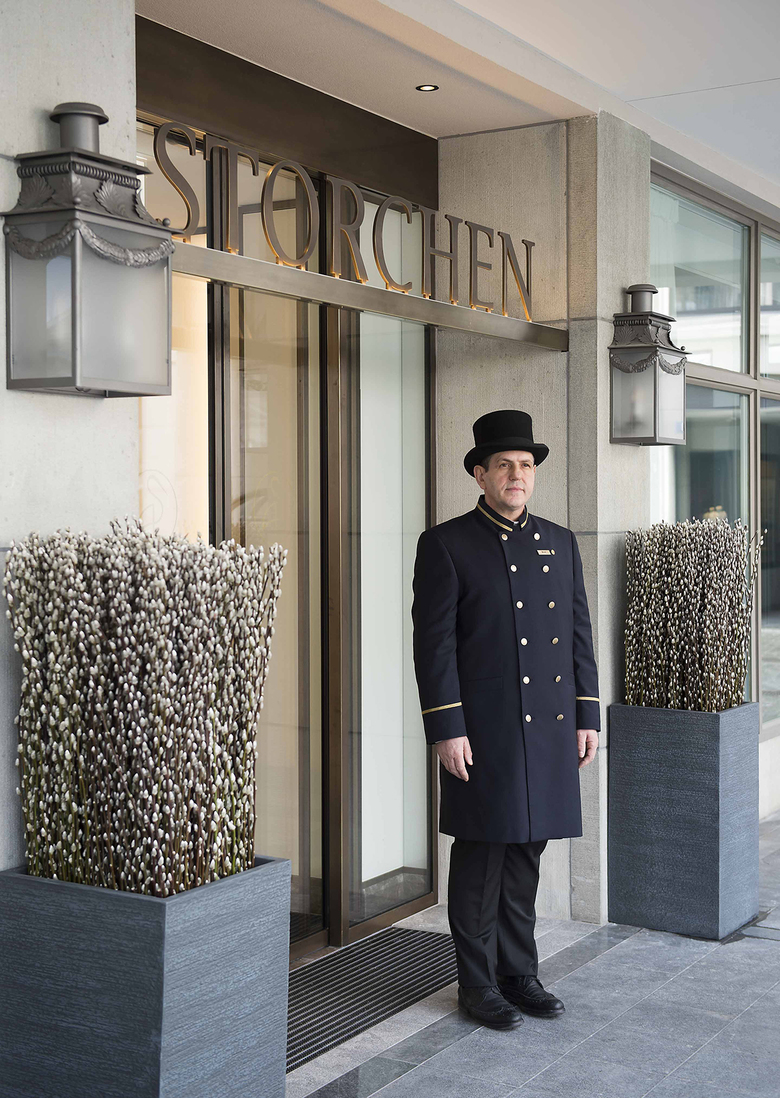 Das Designkonzept für das Hotel Storchen findet seinen Ursprung in keiner gängigen Stilrichtung, sondern inspiriert sich primär in der angestrebten Neupositionierung des Hauses als einmaliges, gleichzeitig wohnliches und zeitgenössisches 5* Hotel für eine neue, international gewandte und junggebliebene Kundschaft. Die aussergewöhnliche Lage im Herzen der Stadt Zürich mit dessen Nähe zum «fashion district» und die charakteristische und historisch relevante Architektur des Hauses sind weitere Referenzpunkte für das frische und zugleich elegante Design. Diese spannende Anforderung aus bewährten und modernen Elementen der Hotellerie spinnen einen roten Faden und prägen das Design sowohl in den öffentlichen, als auch in den Gästebereichen.