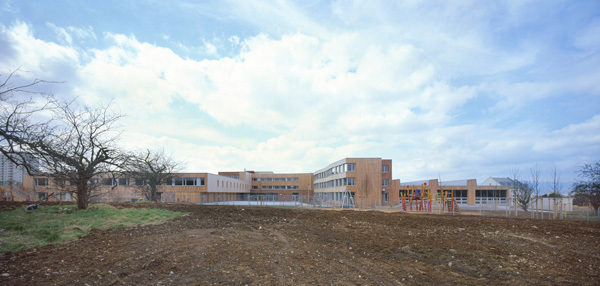 Der konzeptionelle Ausgangspunkt ist der Typus Schule als sozialen wie urbanen Raum. Das aus dem Städtebau entwickelte Ergebnis war demzufolge eine wenig kompakte, dafür jedoch differenzierte öffentliche Räume schaffende Gesamtfigur. Das Zentrum des Ensembles liegt mit dem zum neuen Stadtteil hin offenen Platz im Freien. An ihm liegen sämtliche Eingänge der Grundschule, der Kindertagesstätte und des Jugendhauses. Entsprechend der funktionalen Anforderungen an den ganztägigen Betrieb mit gemeinsam genutzten Einrichtungen sind die einzelnen Teilbereiche im Inneren des Gesamtkomplexes miteinander verbunden.