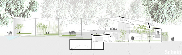 Dem Grundgedanken „Stärkung der räumlich-visuellen Bezüge zum Rosensteinpark“ folgend entwickelt sich das Konzept für das neue Menschenaffenhaus. An den tiefsten Punkt des Geländes gelegt, nutzt es den natürlichen Geländeverlauf. Mit zusätzlichen Geländemodellierungen kann der Großteil der Programmfläche in den Hangeschoben werden und tritt als Baukörper wenig in Erscheinung. Die weiträumigen Lichtbeziehungen bleiben bewahrt. Teile der Dachflächen sind als Teil des Außengeheges naturnah begrünt. Entsprechend den Anforderungen an die nach Tierart variierenden Raumhöhen gliedert sich das Gebäude in zwei Teilbereiche. Die Innengehege der „bodenbewohnenden“ Gorillas sind horizontal organisiert im erdüberdeckten Bereich angeordnet. Die aus der Baustruktur entwickelte Lichtführung erzeugt das Helldunkel hoher Wälder in Analogie zum natürlichen Lebensraum der Tiere.Im Gegensatz dazu sind Innen- wie Außengehege der baumbewohnenden“ Bonobo mit einem hellen, lichten Raum in der Höhe organisiert.