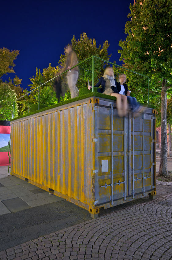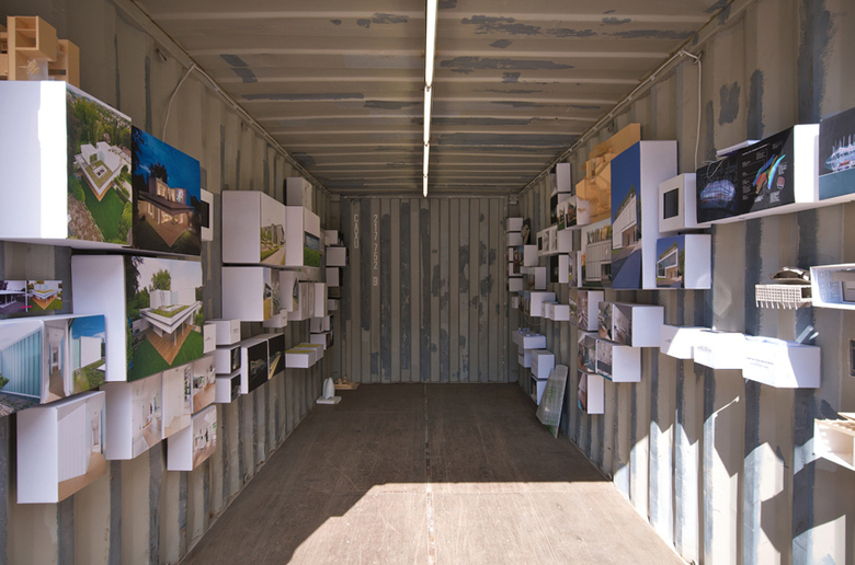 Architekturausstellung in modifizierten Überseecontainern im Zuge des 'Architektursommers Rhein-Main'