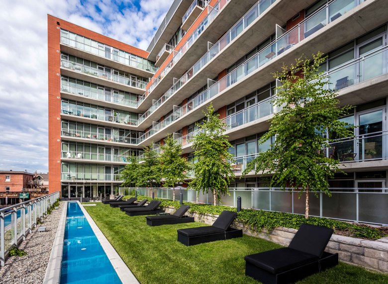Central is a three-phase, LEED Gold mixed-use infill development containing 544 residential units arranged in five to eight storeys above street-related retail space and townhouses.