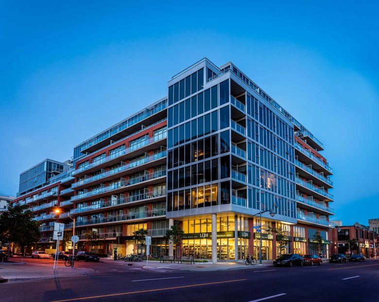 Central Phase 1 includes the retention of the front portion of the former Metropolitan Bible Church, built c.1934, thus giving prominence to this heritage resource. Taking all three phases together, the development of 27,000 square feet of double-height, grade-related retail space – housing important local amenities such as an LCBO, drugstore and coffee shop – has contributed to the commercial rejuvenation of the area, while the addition of 544 residential units has brought lots of new life to the neighbourhood.