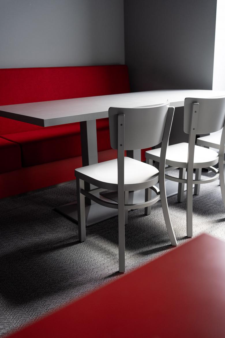 Konzept, Entwurf, Detailplanung und Umsetzung. Neues, modernes Möblierungs-, Farb-, Material- und Lichtkonzept für den Gastraum.