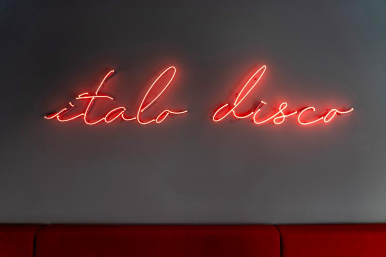 Die hölzernen Möbeleinbauten, die Verkleidung der Theke und die Lampenschirme aus Stoff, die ein italienischer Gastronomie-Einrichter einst installiert hatte, durften entfernt werden; jedoch die mit Natursteinriemchen verkleideten Wände, der Boden, belegt mit schwarzem Steinzeug und die im Untergeschoss befindliche WC-Anlage sollten in der Mietsache verbleiben. Cyrus Ghanai entwickelte einen in seiner Schlichtheit bestechend schönen, modernen, monochromen Look durch den Einsatz von nur zwei klassischen RAL-Tönen, einem reversiblen Boden und einer Deckenverkleidung aus geometrisch klaren, schallabsorbierenden Filzpaneelen. In letzter Konsequenz kreierte das Stuttgarter Designbüro Hochburg in enger Zusammenarbeit mit Cyrus Ghanai ein neues Corporate Design für das Italo Disco mit Brand Identity und deren Ausspielungen auf Social Media, einem Toolkit, bestehend aus Logos und Varianten, Typografien, handgezeichneten Illustrationen, Animationen und GIFs. Speziell zugeschnitten für Instagram, dem einzigen Marketing-Channel des Italo Disco, entstand ein animierender Look and Feel, der den Spirit des Restaurants – verortet zwischen traditioneller, italienischer Trattoria und moderner Boutique Eataly – perfekt aufnimmt. Das Ergebnis: Das Italo Disco ist heute einer der coolsten Italiener der Stadt.
