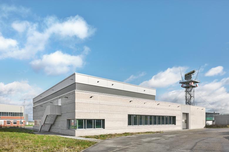 Das Gebäude befindet sich auf dem Flugplatz Laupheim südlich der Flugzeugabstell- und Wartungshallen am Rande des Flugfelds. Der ein- und teilweise zweigeschossige Baukörper hat eine klare Gliederung in zwei Teile: Die Sozialräume mit Verwaltungsräumlichkeiten und die klimatisch zu versorgenden Lager- und Packräume. Oberhalb der Verwaltungsräume sind die Technikräume angeordnet, die die Kubatur mit einem hohen Packraum als L-förmiger Aufsatz mit einheitlicher Gebäudehöhe abschließen.