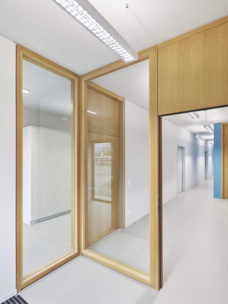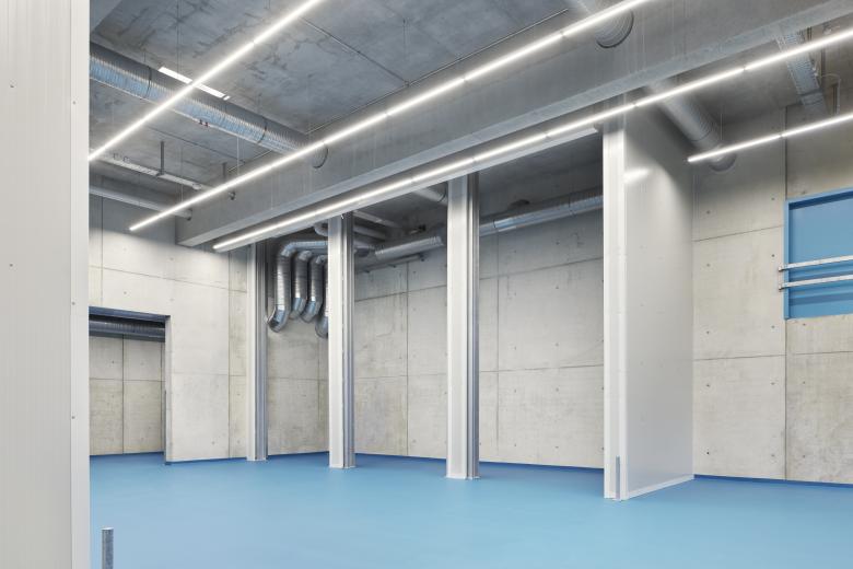 Die Nutzung in den Werkstätten mit Kleinteillager und Umsetzgang und in dem Lager- Packraum erfordert unterschiedliche, lichte Raumhöhen von vier bis sechs Metern.