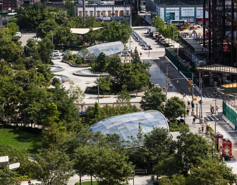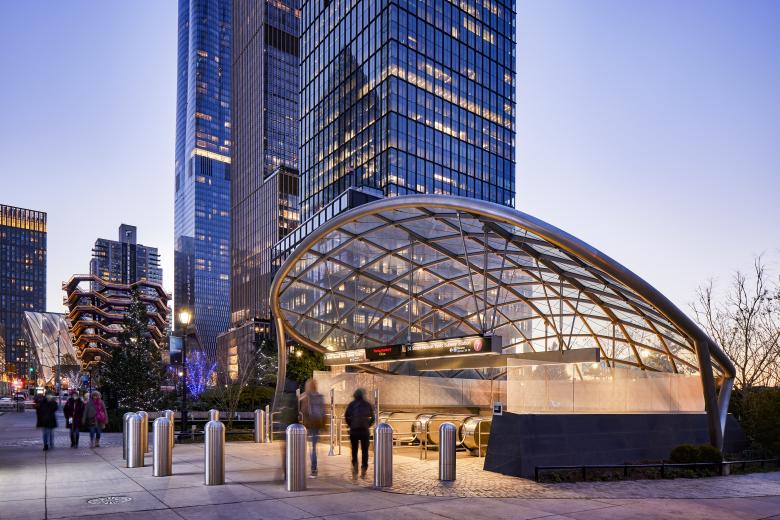 The Number 7 subway extension connects the new Hudson Yards neighborhood on Manhattan’s far west side with transportation hubs at Times Square and Grand Central Station. The first addition to the city subway system in over 25 years, the design incorporates 21st-century levels of safety, comfort, and convenience. A technically complex project, the new line threads itself below the Lincoln Tunnel, Penn Station rail yards, and other subterranean infrastructure. Thousands of daily riders are whisked to the surface on escalators or inclined elevators from one of the deepest rail platforms in New York.
