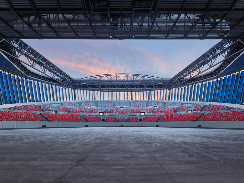 An der georgischen Schwarzmeerküste entstand eine Open-Air Konzertarena mit einer Kapazität von ca. 9.000 Besuchern, die einen gewissen Schutz vor Wind, Sonne und Regen für den Zuschauerbereich bieten sollte. Ansteigende, halbkreisförmig angeordneten Sitzränge des offenen Auditoriums richten sich wie in einem antiken Theater auf die große Bühne aus. Darunter sind Besucherfoyers, VIP-Bereiche, 4 Kinos sowie Neben- und Technikräume angeordnet. Bühnenseitig bietet ein U-förmiges, sechsgeschossiges Gebäude Platz für ein Zwischenlager, eine Cafeteria, Umkleiden und die Büros der Verwaltung. Durch eine gemeinsame Dachkonstruktion aus Stahl und umlaufende transluzente und hinterleuchtbare Lamellen werden Auditorium und Bühnengebäude zu einer weithin sichtbaren Großform zusammengefasst. Die Dachfläche über dem Zuschauerbereich lässt sich öffnen und alle Lamellen sind drehbar, wodurch sich die Black Sea Arena an unterschiedliche Witterungen und Situationen anpassen kann. Je nach Bedarf kann sie in ihrer Umgebung ruhig und zurückhaltend bleiben, oder sich für Veranstaltungen einladend öffnen und die Besucher willkommen heißen. Zusätzliche technische Nebenfunktionen wie eine große Lagerhalle, eine Feuerwache, eine autarke Energiezentrale und eine Wasseraufbereitung wurden in einem separaten Nebengebäude zusammengefasst. Die komplette Freianlagenplanung mit Masterplan, Erschließung und Infrastruktur für das Gebiet war Teil der Gesamtaufgabe.