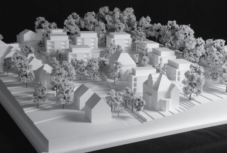 Kristallisation (Keimzellle) für die Neubebauung ist die denkmalgeschützte Henle Villa, die 1921 von Professor Gustav von Cube und Arthur Buchloh errichtet und 1937 in angepasster Gestaltung erweitert wurde. 1960 errichtete Emil Fahrenkamp eine zweigeschossige repräsentative Eingangshalle, die geschäftlichen Anlässen wie Empfängen und zur Präsentation der Kunstsammlung diente. Damit wurde der Missstand des sehr kleinen vestibülen Haupteingangs behoben. Sieben Baukörper bilden einen Rahmen um das Ensemble der Henle Villa mit dem Fahrenkamp-Anbau und ordnen damit das 9.300 m² große Grundstück neu. Sie stehen fast parallel zu den denkmalgeschützten Gebäuden und bilden nördlich von ihnen einen zentralen Quartiersplatz. Die Maßstäblickeit für die Neubebauung der quadratischen Baukörper nimmt die vorhandenen Fassadenhöhen der Wilhelmshöhe 8 (Henle Villa) und 6 auf. Die drei östlichen, rechteckigen Baukörper bilden einen Rücken für die Villa Henle und sind Filter zum Waldrand. Die Gebäudehöhen dieser Villen sind aus Respekt bewusst niedriger als die der Villa Henle. Insgesamt werden ca. 45-55 Wohnungen mit 65 m² bis 180 m² neu errichtet. Die Wohnungen bieten offene Grundrisse und sind ausschließlich nach Süden oder Westen orientiert. Durch große Fensterflächen entstehen helle lichtdurchflutete Räume. Alle Wohnungen sind barrierefrei durch einen Aufzug, auch von der Tiefgarage aus, zu erreichen.
