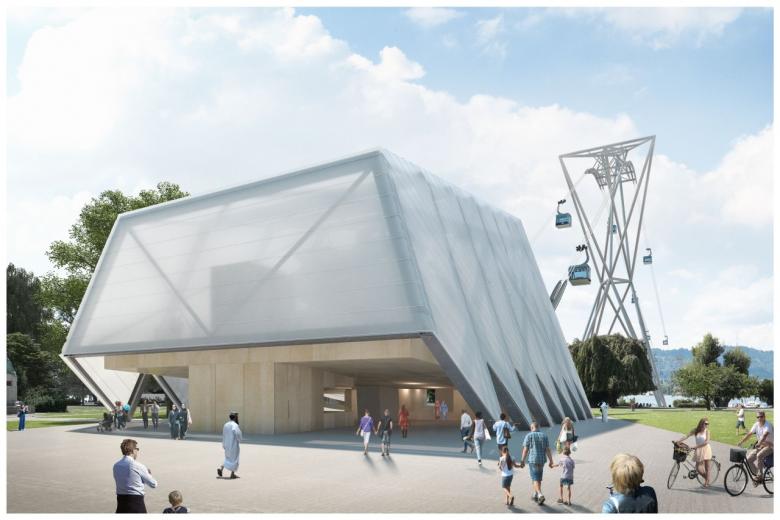 Temporäre Seilbahn mit 18 Fahrkabinen quer über das Zürcher Seebecken