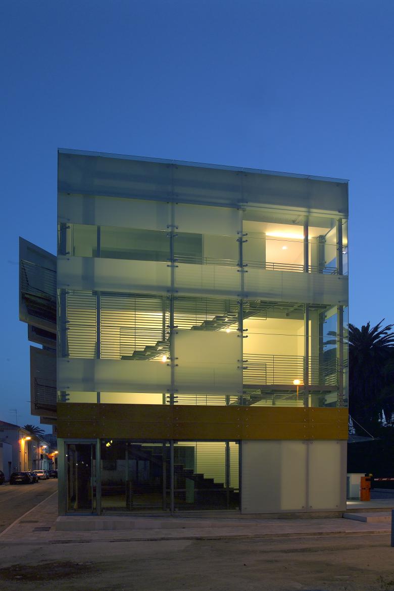 L’edificio accoglie delle residenze temporanee per vacanze. L’idea, anche in ragione della morfologia fortemente allungata dell’edificio, è quella di pensare questi spazi quasi come spazi nautici, più che come residenze piantate sulla terraferma; l’accesso a tutti gli alloggi avviene da un lungo “ponte” posto all’ ultimo piano, da cui si distribuiscono gli ambienti giorno degli alloggi.