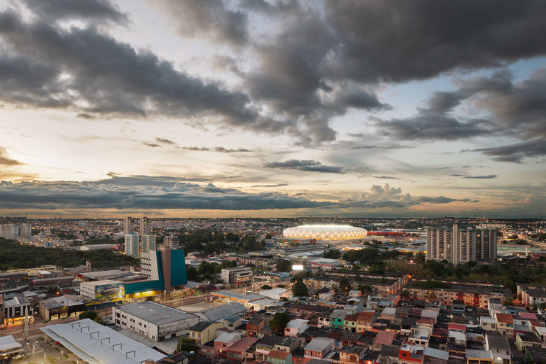 Für 45.000 Zuschauer konzipiert, liegt das Stadion direkt an der zentralen Verkehrsachse die den Flughafen mit der Innenstadt verbindet. Integriert in einen Sportpark, der auch ein Sambadrom, Leichtathletikanlagen, Mehrzweckhallen und ein Schwimmzentrum beinhaltet, entsteht die „Arena da Amazônia“, die ideale Vorraussetzungen für professionelle und lokale Sportereignisse bietet. Das Projekt wurde gemeinsam mit unserem lokalen Partnerbüro STADIA aus São Paulo sowie mit schlaich bergermann und partner aus Stuttgart als Tragwerksplaner entwickelt.