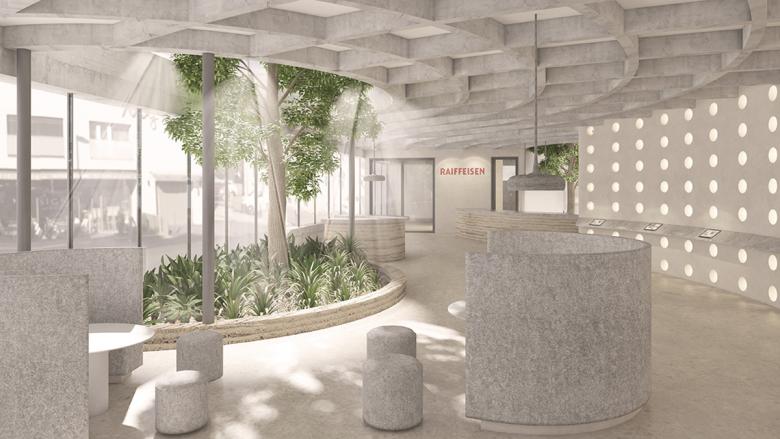 ''Onodrim'' beherbergt zwei lebende Bäume, welche über vier Geschosse durch das Gebäude wachsen. Die beiden Pflanzen sind in allen Geschossen präsent und werden entsprechend verschieden wahrgenommen. Während im Eingangsgeschosse eine starke Verwurzelung und einen Standfesten Stamm wahrgenommen wird, kann im Schulungsraum im Bereich der Baumkronen offen diskutiert und kreativen Ideen neues Leben eingehaucht werden. Die Kraft dieser beiden „treuen Mitarbeiter“ unterstreichen die bäuerlichen Wurzeln der Raiffeisenbank im positiven Sinn und vermitteln dem Kunden Bodenständigkeit, Standfestigkeit und Authentizität.