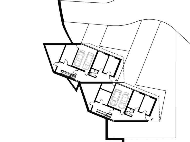 Realisiert 2006 - 2007. Der poligonale Grundriss entwickelt sich aus den örtlichen Gegebenheiten. Janusköpfig verfügt der Baukörper über zwei Hauptwohnrichtungen womit die örtliche Qualitäten wie Sonnengang und Aussicht vollumfänglich einbezogen werden.Das schwach nach Norden geneigte Grundstück wird von der Nordseite erschlossen. Der Zugang ist somit an der teifsten Stelle der Parzelle und führt über das nur teilweise in die Topographie eingelassene Erdgeschoss, in welchem eine Doppelgarage, ein Gästezimmer, ein Büro, sowie die Kellerräume eingeschrieben sind. Eine einläufige Treppe, welche in der Fassade tief eingeschmitten ist, führt in das Obergeschoss, in welchem drei Schlafzimmer, die Küche und der Wohn- Essraum organisiert sind. Über eine Stahltreppe gelangt man in die Lounge und auf die Dachterrasse.Durch eine Kaskadenartige Deckenkonstruktion wird eine progressive Raumhöhenentwicklung erzielt. Während die Schlafzimmer normale Raumhöhen von 2.4 - 2.6 Meter erreichen, weisen die Ess- und Wohnbereiche Raumhöhen von 2.7 Meter auf.Die Statik erfolgt über zwei Wandscheiben und einen tragenden Kern, was eine weitgehend offene Gestaltung des Baukörpers ermöglicht.