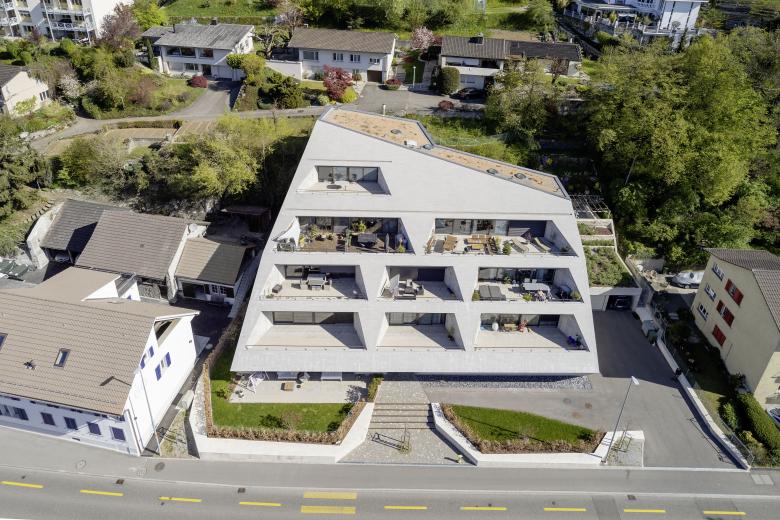 Der Baukörper wird so ausgebildet, dass die bestehende Felswand erhalten bleibt und zusammen mit den Fassaden des Neubaus einen Aussenraum definiert, welcher der Gemeinschaft dienen soll.
