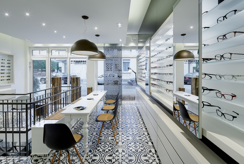 Das Pforzheimer Optikerfachgeschäft inszeniert seine Brillen in einem Ladenbau- und Designkonzept voller Gegensätze. Das kleine, im Erdgeschoss gelegene Ladenlokal schafft es, Kunden zu fokussieren. Bereits im Schaufenster treffen Materialien und Farben in unerwarteter Kombination zusammen. Imposante und hochwertige Glasvitrinen wurden hier auf riesigen Altholzstehlen platziert. Betritt man das ansprechende Ladenlokal befindet man sich direkt in einer Welt aus Klassik und Moderne. Das Auge hat hier viele, gekonnt platzierte Details zu entdecken.