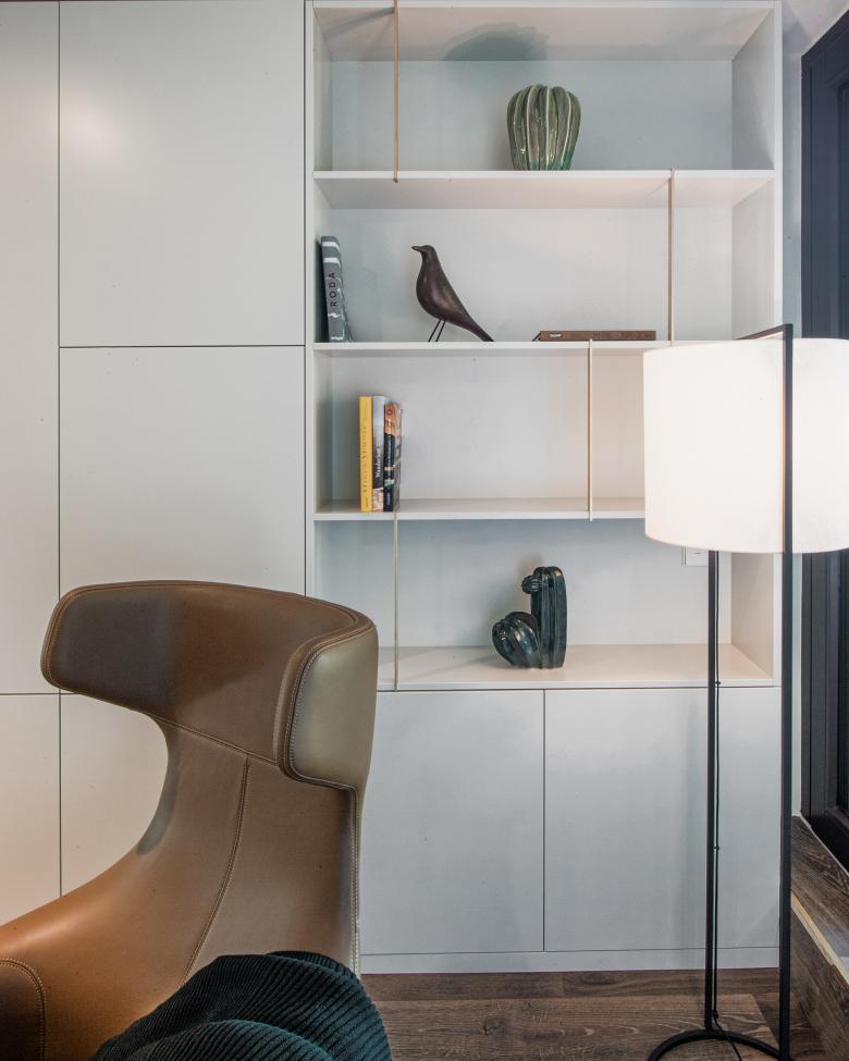 Das von iam sanierte Apartment am Englischen Garten ist Teil eines Mehrfamilienhauses aus den 60er Jahren. Der Grundriss wurde den Anforderungen der Bauherren entsprechend aufgebrochen, um neue großzügige Wohnräume zu schaffen. Dunkles Parkett und eine warme Farbgestaltung kreieren atmosphärische Räume mit durchdachten Sichtbezügen zum begrünten Umfeld. Die Fassadengestaltung des Bestands, sowie die grüne Umgebung wird durch farblich korrespondierende Elemente in das Innenraumkonzept adaptiert. Dieses nimmt sich mit hellen Farben der Einbauten zurück und wird durch ausgewählte feine Mustertapeten und Messingdetails als Leitmotiv akzentuiert.