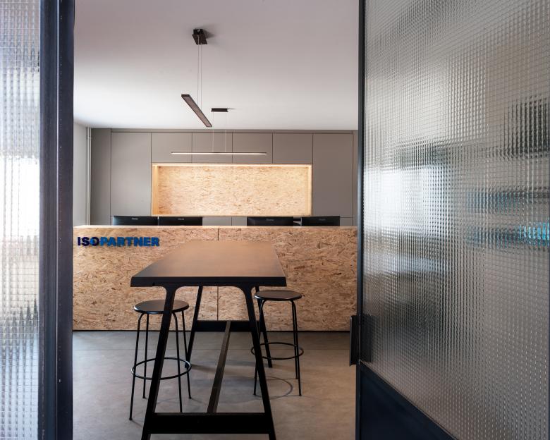 Die Büroräume mit angrenzender Lagerhalle aus den 80er Jahren sollten im Rahmen einer Firmenumstrukturierung modernisiert und ein zeitgemäßes Erscheinungsbild für die neu entstandene Marke geschaffen werden. Für die Mitarbeiter als auch Kunden des Großhandelsunternehmens für Dämmstoffe sollten Räumlichkeiten entstehen, die Wertschätzung gegenüber Mensch und Produkt vermitteln.