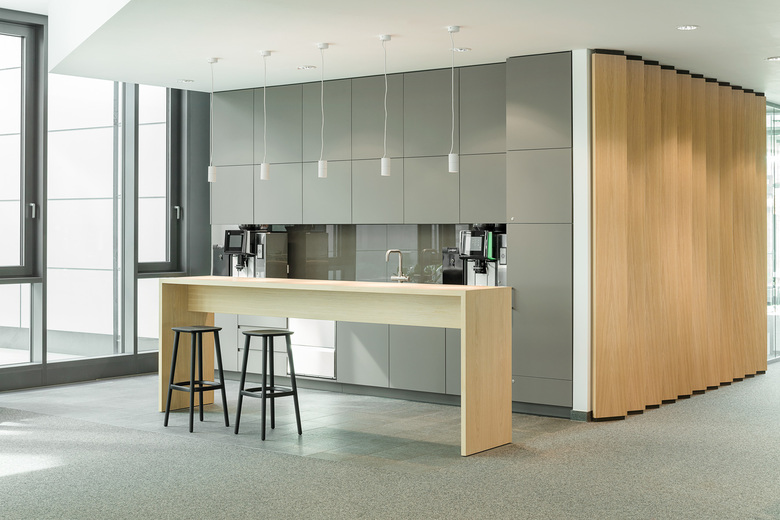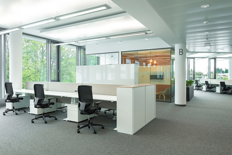 Für das neue Gebäude am Standort Stockdorf, das vom Architekturbüro Hoffmann Amtsberg (abha) geplant und ausgeführt wurde, wurden durch iam Bereiche geschaffen, die den unterschiedlichen Bedürfnissen der Mitarbeiter nach Konzentration, Kommunikation und Rückzug gerecht werden und die Zusammenarbeit im neuen Firmenhauptsitz bei München beleben. So konnte im Change Prozess, dem sich auch die Führungskräfte unterstellt haben, den Ängsten vor flexiblen Arbeitskonzepten wirksam begegnet werden.