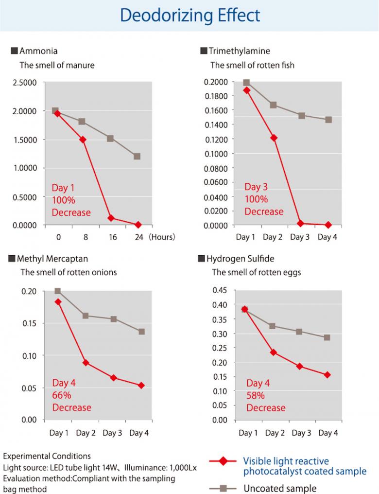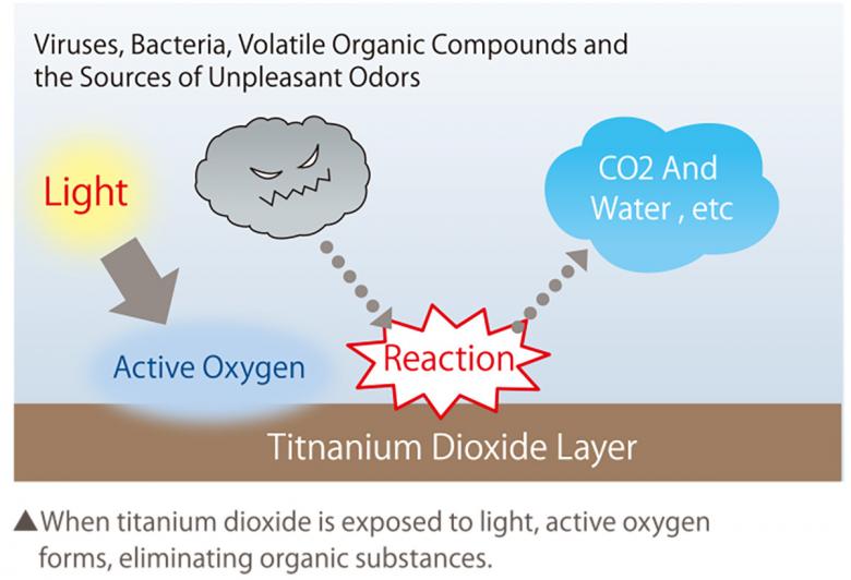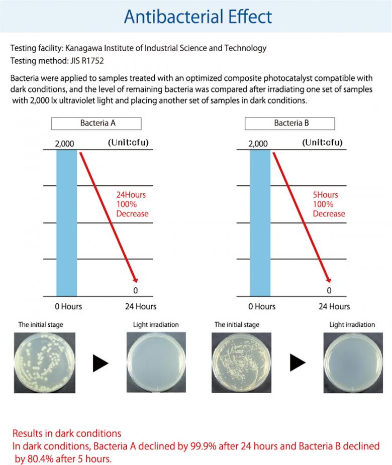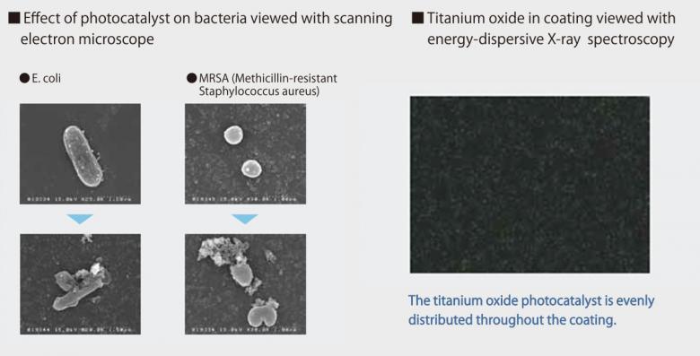 目に見える光に反応し、暗所でも効果を発揮する 画期的な新技術、「暗所対応型の最適化複合光触媒」