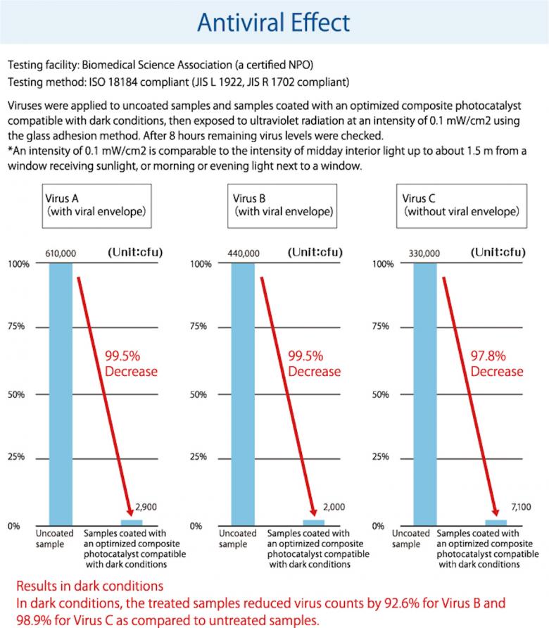 ●抗ウィルス効果 ●抗菌効果 ●VOC低減効果 ●消臭効果