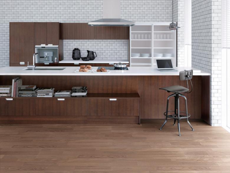 しっとりとしたマットな風合いのラスティック塗装に、可視光型光触媒による消臭、ウィルス、細菌、VOC低減効果をプラスした、安心、安全、健康かつ、天然木ツキ板のフローリング。