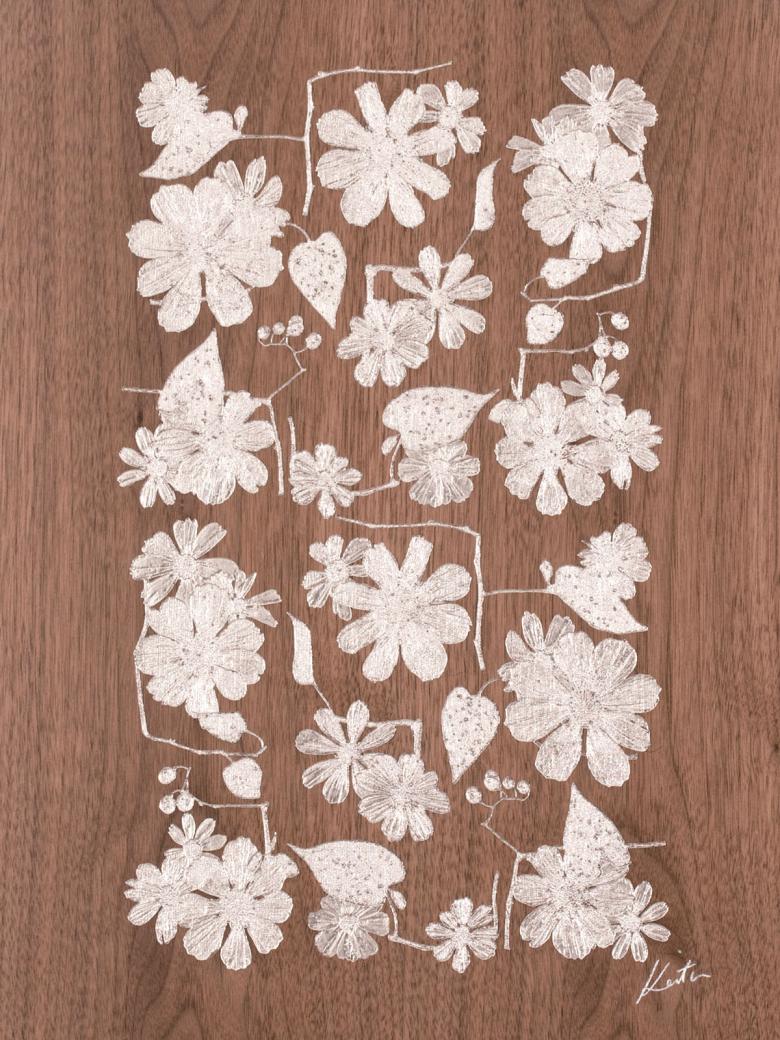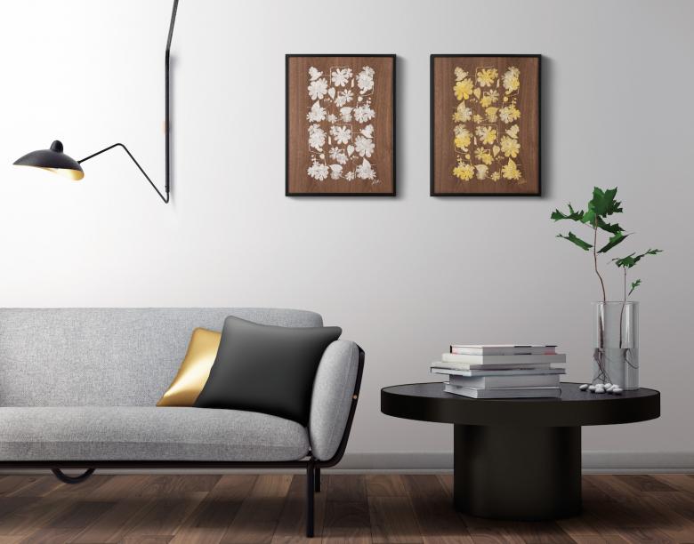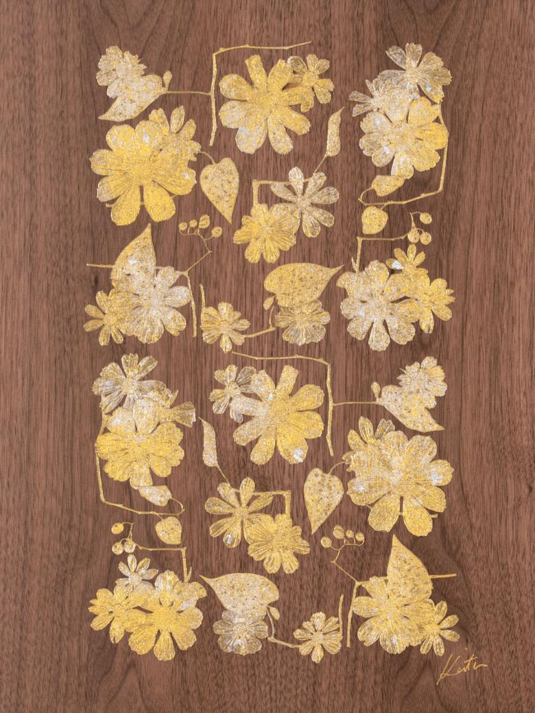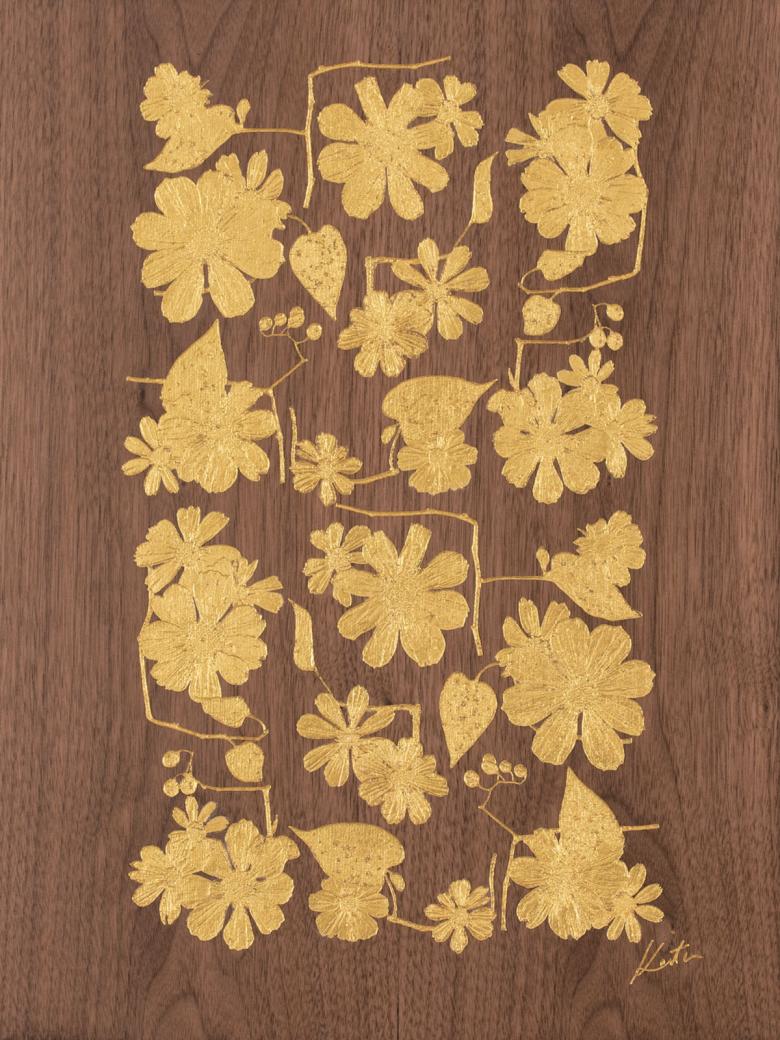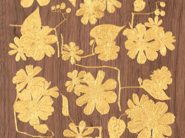 伝統を誇る日本の箔技術が出合い、木片に金箔を張り合わせる金箔工芸表現がIKUTAを繋ぎ手として誕生、『花グラフィック』に新たな世界観をもたらしました。