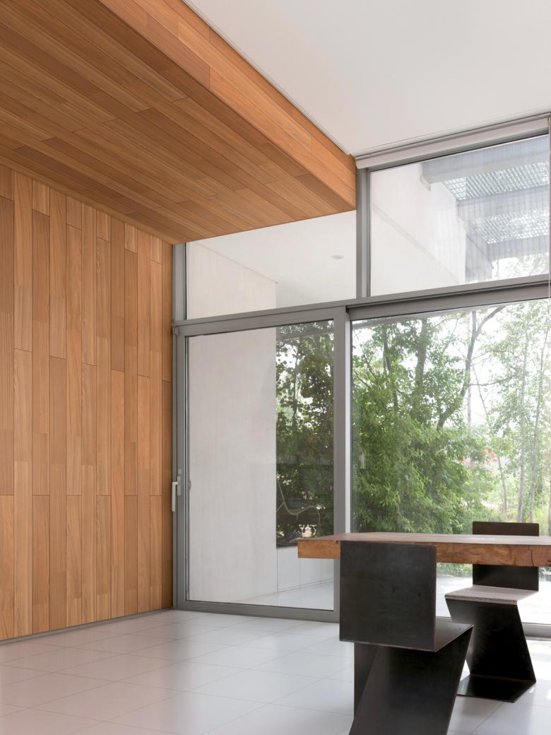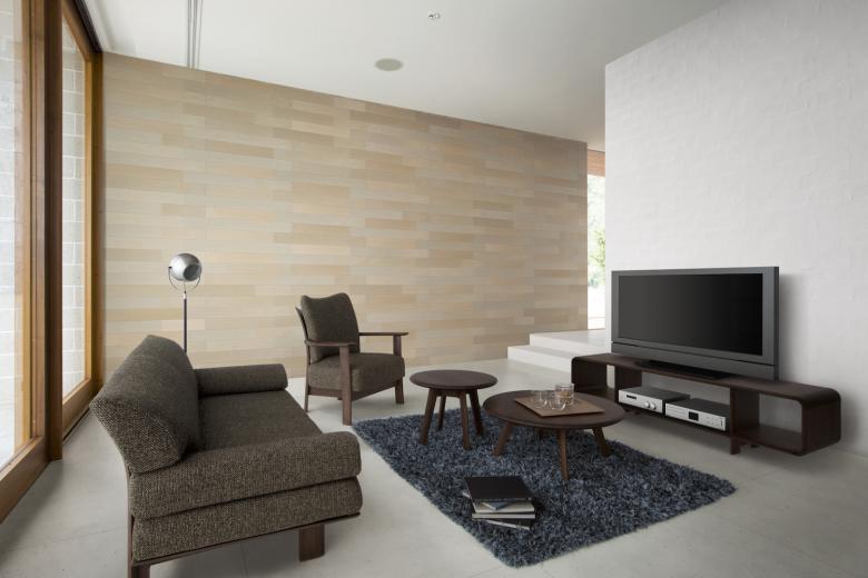 深い森に憩うように銘木に囲まれて寛ぐ、贅沢な空間を提供する内装壁・天井材です。