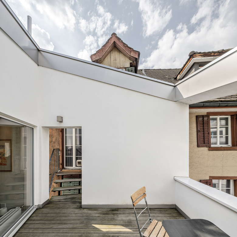 Auf einer Grundfläche von 65m2 entstand ein Minihaus, das der Bauherrschaft fortan als Altersdomizil dient und den Nachkommen im ehemaligen Elternhaus eine eigene Zukunft eröffnet- ein Generationenhaus mitten in der Stadt.