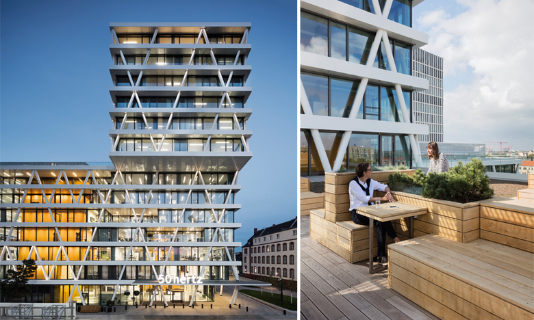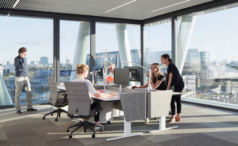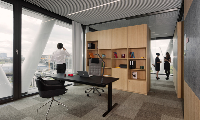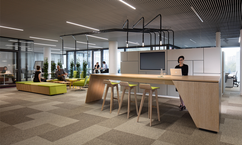 Innovative Arbeitsplatzgestaltung im Zentrum der Hauptstadt: Im neuen Netzquartier des Stromübertragungsnetzbetreibers 50Hertz vermittelt Kinzo auf einer Fläche von 24.000 m² gekonnt zwischen dem spannungsgeladenen Umfeld des Berliner Hauptbahnhofs, der markanten Architektur und den Bedürfnissen eines schnell wachsenden Großunternehmens. Einzel- und Teamarbeitsplätze werden mit großzügigen Mittelzonen und Loggien kombiniert, die den Mitarbeitern ein flexibles, non-territoriales und abwechslungsreiches Arbeitsumfeld in einer wohnlichen Atmosphäre bieten. Und mit den eigens für das Projekt entwickelten Leuchten und Akustikaufsätze schließt Kinzo den Kreis zu Form und Funktion.