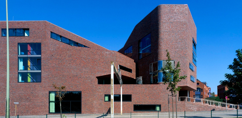 Das Zusammenwirken von städtebaulicher Gestalt und der massiven haptischen Materialität führt zu einem für diesen Ort unverwechselbaren Baukörper. Es entsteht eine langlebige und widerstandsfähige Ziegelskulptur, die sich ins Gedächtnis und die Stadtsilhouette einschreibt.