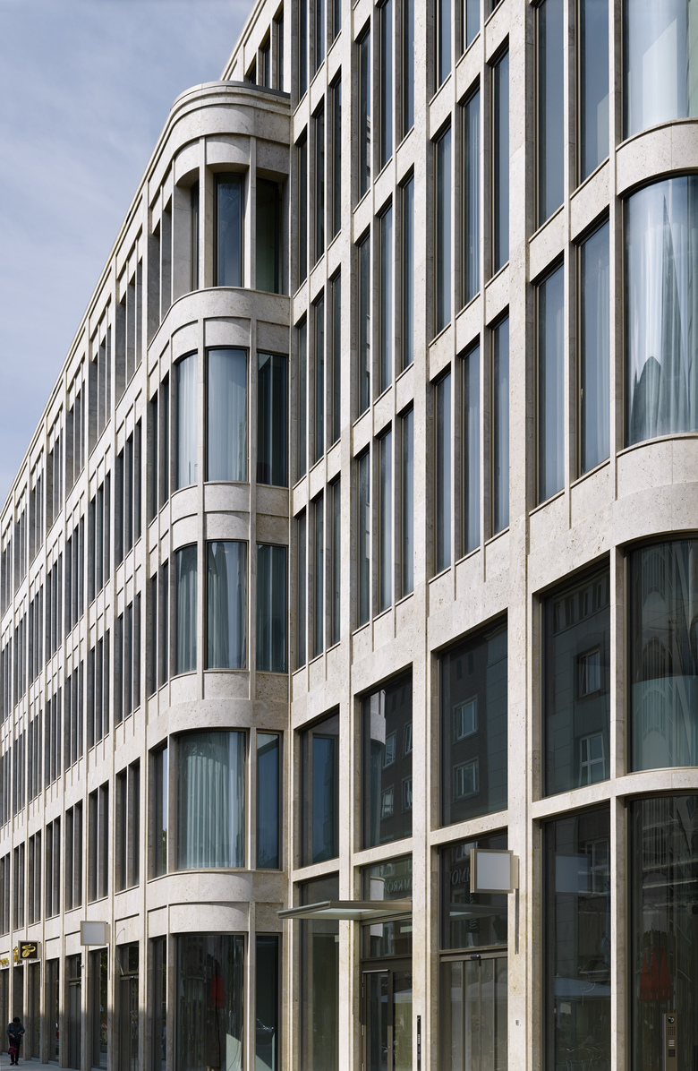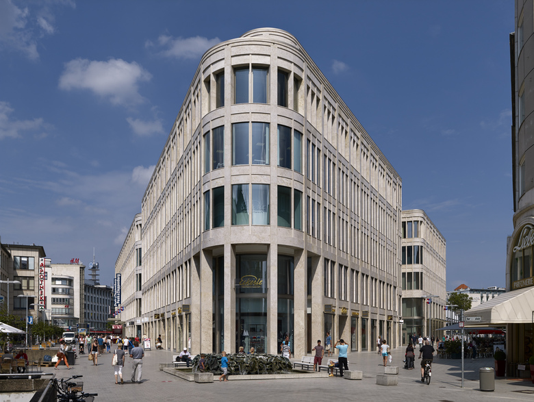 Der Kröpke ist Hannovers zentralster Platz im Stadtzentrum. An dieser exponierten Lage wurde mit der radikalen Überformung eines vorhandenen Gebäudes aus den 1970er Jahren der Stadtraum wieder hergestellt und ein Gebäude geformt, welches sich in Maßstab und Proportion als wohltuend ruhiger Baustein der Stadt präsentiert, ohne auf ein ausdrucksstarkes Erscheinungsbild zu verzichten. Die klare Ausbildung der Straßen- und Platzräume und die dem Maßstab der Stadt angemessene Konturierung verleihen dem Gebäude eine qualitätvolle Selbstverständlichkeit, welche von der präzisen Ausgestaltung der Fassaden unterstützt wird. Der Umbau des Gebäudekomplexes bezieht auch die im städtischen Besitz befindliche Passerelle mit ein, die sich zum zentralen Untergrundplatz, Kreuzungspunkt vieler U-Bahnlinien, öffnet. Die nach oben offene Passerelle wird an ihrem Endpunkt im Bereich des U-Bahnhofs mit dem nördlichen Teil des Kröpcke Centers überbaut. Die unteren Ebenen werden im Zuge der Baumaßnahmen mit neuen Einzelhandelsflächen umgebaut. Die Staffelung des Gebäudes in seiner Höhen- und Tiefenentwicklung korrespondiert mit dem stadträumlichen Umfeld. Überzeugend ist die wertige Ausführung der rhythmisierten Fassade aus glattem und profiliertem Kalkstein, wodurch dem Gebäude eine zeitlose Eleganz verliehen wird, die die Qualität des Gebäudes unterstützt und zur Identität der Stadt beiträgt. Der Entwurf für das Kröpcke-Center zeichnet sich durch eine moderne und vor allen Dingen zeitlose Architektur aus. Glas und Naturstein ersetzen den rauen Beton des Vorgängerbaus. Bauherr Centrum Asset Management, Aachen Architekt Jan Kleihues und Norbert Hensel Planungsleistung Lph. 2-9 Planungsbeginn 05.2008 Realisierung 03.2009 bis 2014 BGF 40.451 m2 Baukosten 80 Mio. €