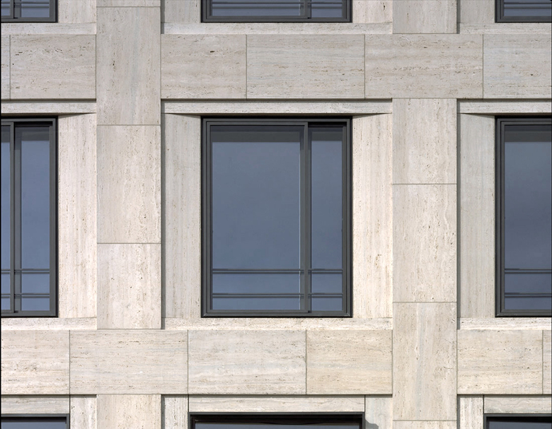 Die städtebaulichen Vorgaben sehen eine Wiederherstellung der historischen Form des Leipziger Platzes vor, in der sich die einzelnen Gebäude der klaren Geometrie des Platzes unterordnen. Für den Entwurf des Wohn- und Geschäftshauses wurden diese Vorgaben als Chance begriffen, ein Stück öffentlichen Raum zu schaffen, dessen Fassadenvielfalt sich für den genau Hinschauenden eröffnet. Die Fassade zeichnet sich durch eine stringente, der Funktion auf unkapriziöse Weise entsprechenden Proportion geöffneter und geschlossener Flächen aus. Das Relief der Fassade und die Größe der einzelnen Elemente bewirken einen großstädtischen Charakter, der durch die Solidität der Materialien und die Details untermauert wird. Die Fassade gehorcht streng dem Prinzip der Grundgeometrie, der Symmetrie über die Diagonale und einem daraus entwickelten Motiv des Geflechtes. Das Flechtwerk wird durch das Fugenbild sichtbar gemacht. Die Eingangshalle auf der Seite des Leipziger Platzes entspringt der oben genannten Geometrie und hat infolgedessen in Grund- und Aufriss identische Dimensionen; es entsteht ein Kubus. Die Differenzierung Sockel/Schaft/Staffelgeschosse findet Deckung in der Funktionsverteilung Einzelhandel und Eingang/Büro/Wohnung.