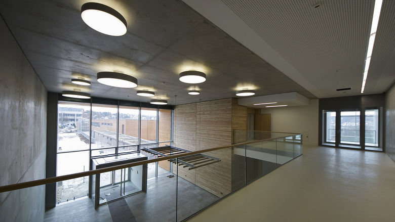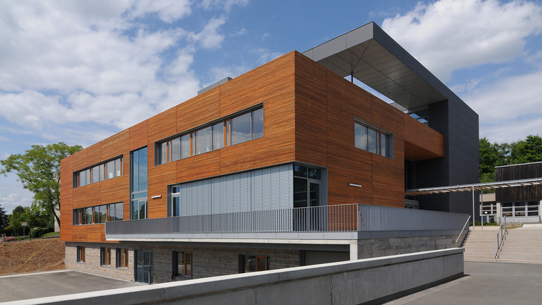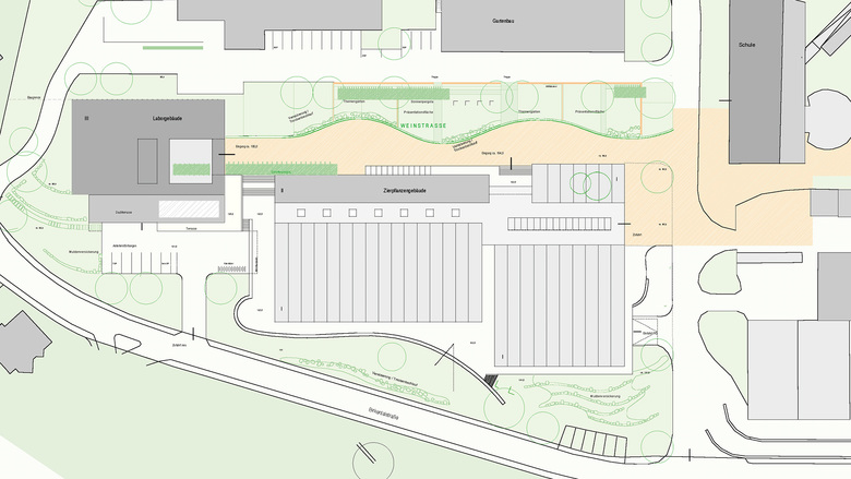 Die Neubauten der bayerischen Landesanstalt gruppieren sich um einen neugeschaffenen Campus im bestehenden Areal. Den Auftakt bildet das Zierpflanzengebäude mit Gewächshäusern für Versuchs- und Trainingszwecke sowie einem angegliederten Funktionsgebäude. Über Terrassen und Wege wird das Gelände auch für die zahlreichen Besuchern erlebbar gemacht. Eine zentrale Achse bildet dabei die öffentliche „Weinstraße“ mit vielfältigen Pflanzflächen. Das dreigeschossige Laborgebäude markiert den Abschluß der Anlage. Über eine zentrale und kommunikationsfördernde Halle werden die Laborbereiche über kurze Wege erschlossen. Angrenzende Bürobereiche sind nach Süden orientiert mit Blick auf die umliegenden Weinberge. Durch konstruktive Maßnahmen wird die ENEV 2009 eingehalten, die Energieversorgung erfolgt über eine Wärmepumpe, die durch das Mainwasser gespeist wird. Eine Bauteilaktivierung versorgt die Laborbereiche, alternative Energien wie Fotovoltaik und thermische Solarnutzung runden den zukunftsorientierten Charakter des Projektes ab. Über Materialien wird auch baulich der Zusammenhang von Anbau und Forschung hergestellt. Holz und Naturstein verweisen auf die naturverbundene Funktion und bilden damit eine harmonische Einheit mit der gesamten Anlage.