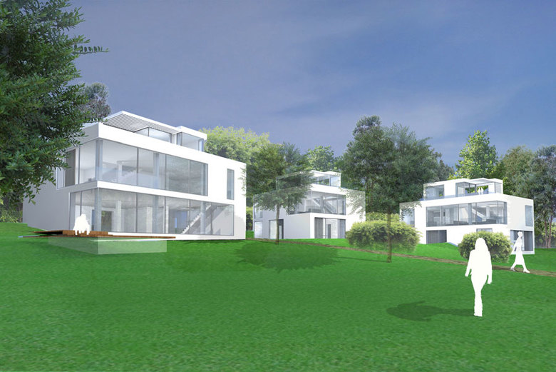 Auf das großzügige Grundstück in Starnberg wurden drei zum See hin orientierte Häuser mit je 400 qm Wohnfläche geplant. Die klare Formensprache der kubischen Baukörper zeichnet sich durch großflächige Fensterfronten und eine abwechslungsreiche Fassade aus.Die Grundrisse sind flexibel und offen gestaltet . Alle Wohnebenen sind barrierefrei erschlossen und direkt von der Tiefgarage im UG zugänglich. Die Wärmeversorgung erfolgt über ein lokales Blockheizkraftwerk.