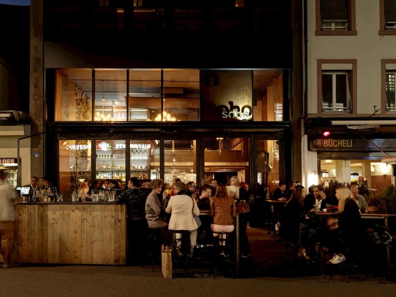 Am Abend verwandelt sich das SOHO in eine betriebsame Bar, wo die Gäste ihren Arbeitstag bei einem Bier, exotischen Cocktails, erlesenem Wein begleitet von ausgesuchten Snacks und Speisen ausklingen lassen können. An den Wochenenden stehen diverse Events mit Live-Musik auf dem Programm.