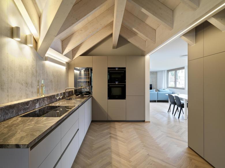 Der Käufer kann zwischen drei Ausbaulevels (One, Icon, Soul) auswählen. Hochwertige Parkettböden (Fischgrat) und geschliffene Unterlagsböden, Naturstein in den Bädern sowie exklusive Küchen.
