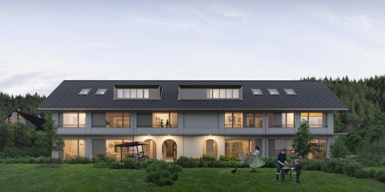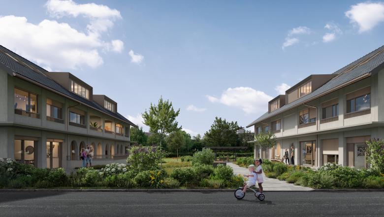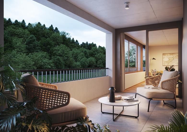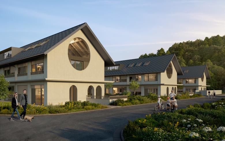 Die Wohnüberbauung am Eichenweg ist als Übergang zwischen dem angrenzenden Wald und dem Dorf konzipiert.