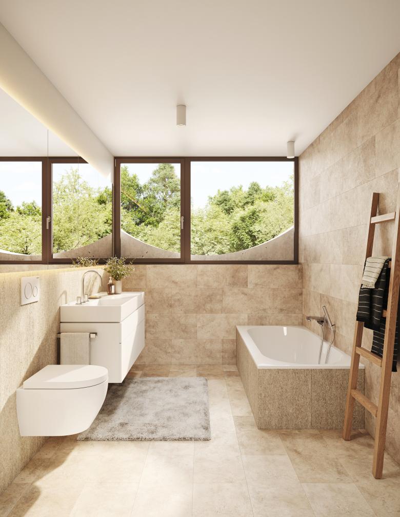Die drei freistehenden Baukörper mit Satteldach mitten im Grünen interpretieren die traditionelle Architektur von Muttenz neu durch die Verwendung zeitgemässer Materialien in Kombination mit zeitloser architektonischen Akzente.