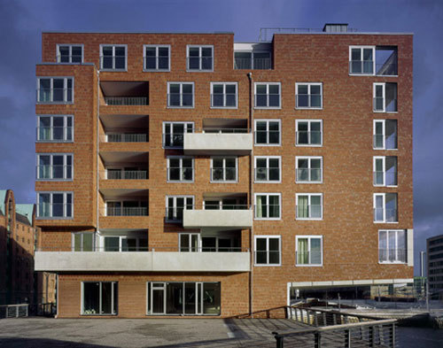 Neubau eines Wohngebäudes in der HafenCity mit einem großen offenen Treppenhaus und einer offenen, gemeinschaftlich genutzten Terrasse für die Bewohner. Wettbewerb 1. Preis.