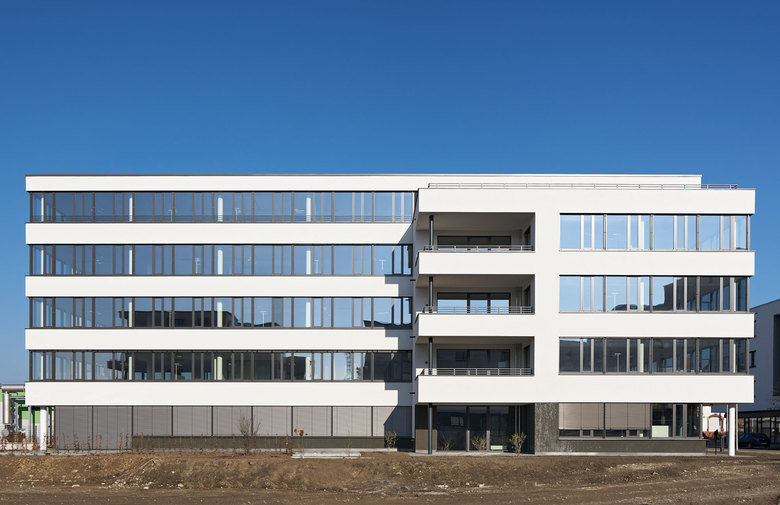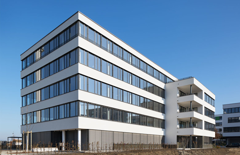 Das Bürogebäude ist Teil eines größeren Gesamtprojektes mit insgesamt zehn Gebäuden mit unterschiedlichen Nutzungen und einer verbindenden einheitlichen Freiflächengestaltung. In der Summe ergibt sich ein nutzungemischtes Quartier mit annähernd gleich vielen Flächen für Gewerbe wie für Wohnen.