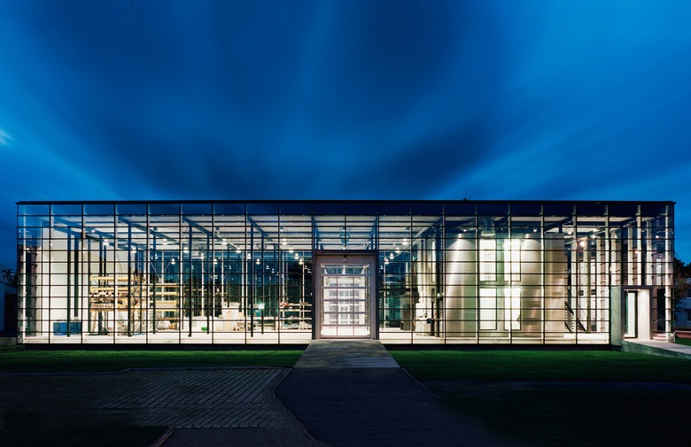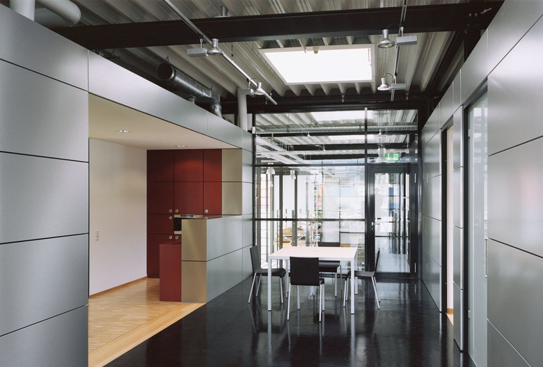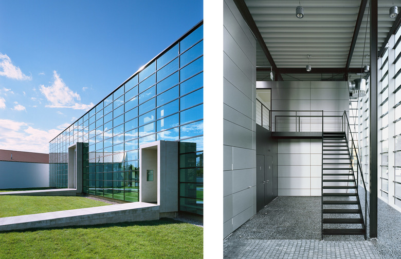 Der Nutzer und Eigentümer des Gebäudes ist ein international tätiges Unternehmen im Bereich der Außenwerbung. Im Zusammenarbeit mit dem Büro für Industriedesign, Iondesign Berlin, wurde der Entwurf des Gebäudes entwickelt. Unser Büro war als Generalplaner verantwortlich für die Leistungsphase 4 bis 9. Der Auftraggeber legte entsprechend seinen Produkten, Wert auf einen hohen Gestaltungsanpruch.